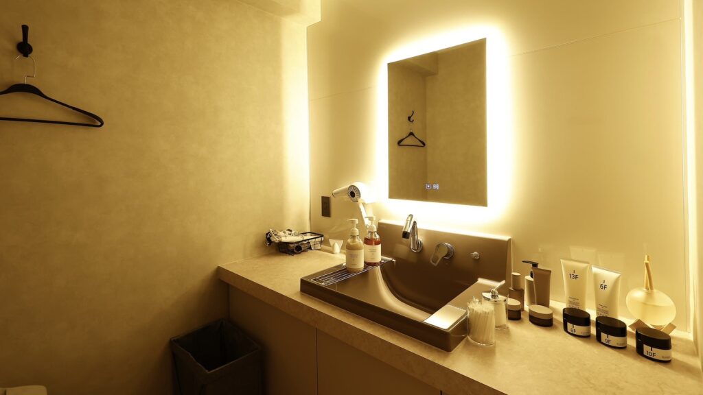 ドライヤーや、サロンクオリティのスタイリング剤も完備。